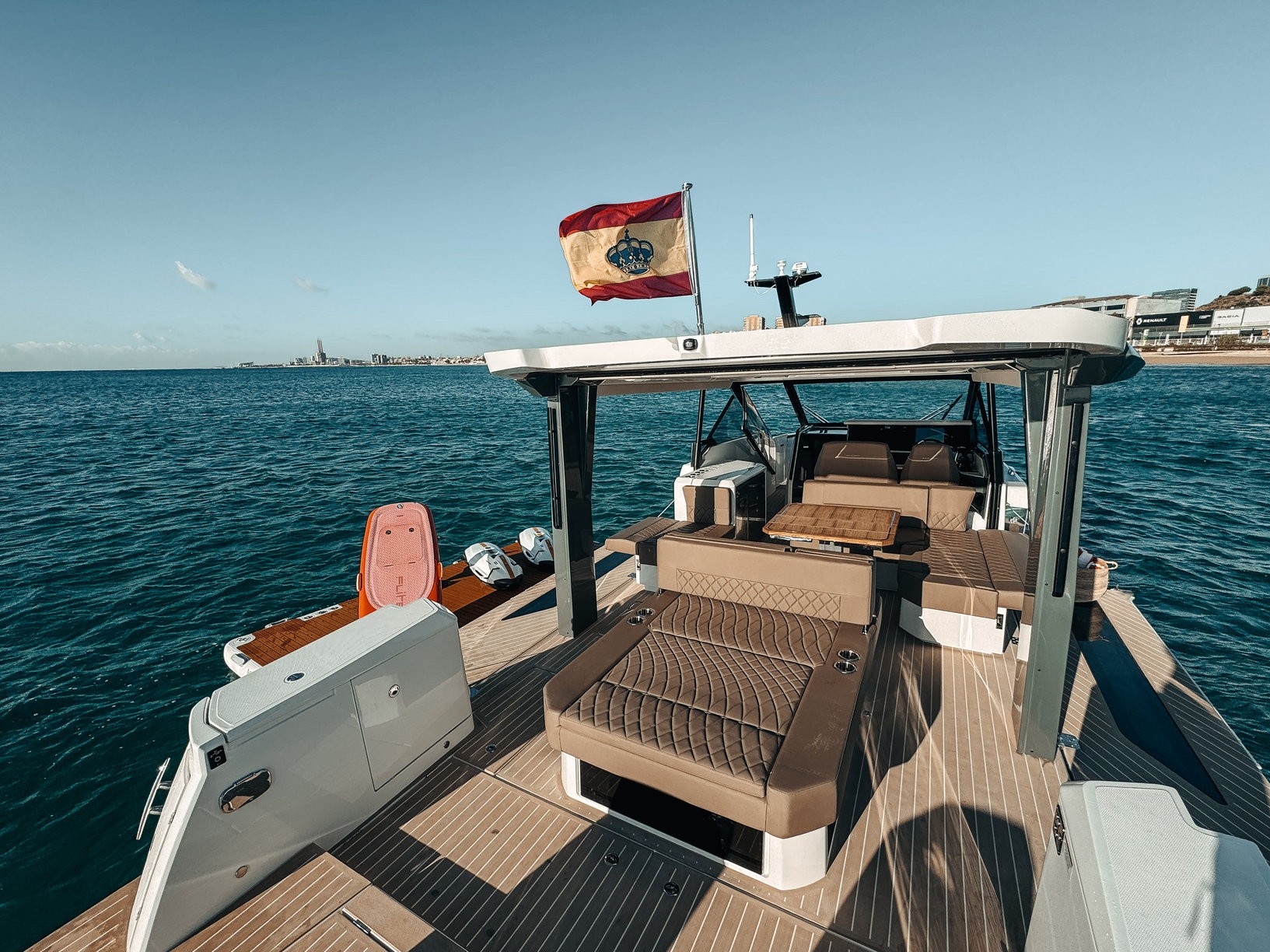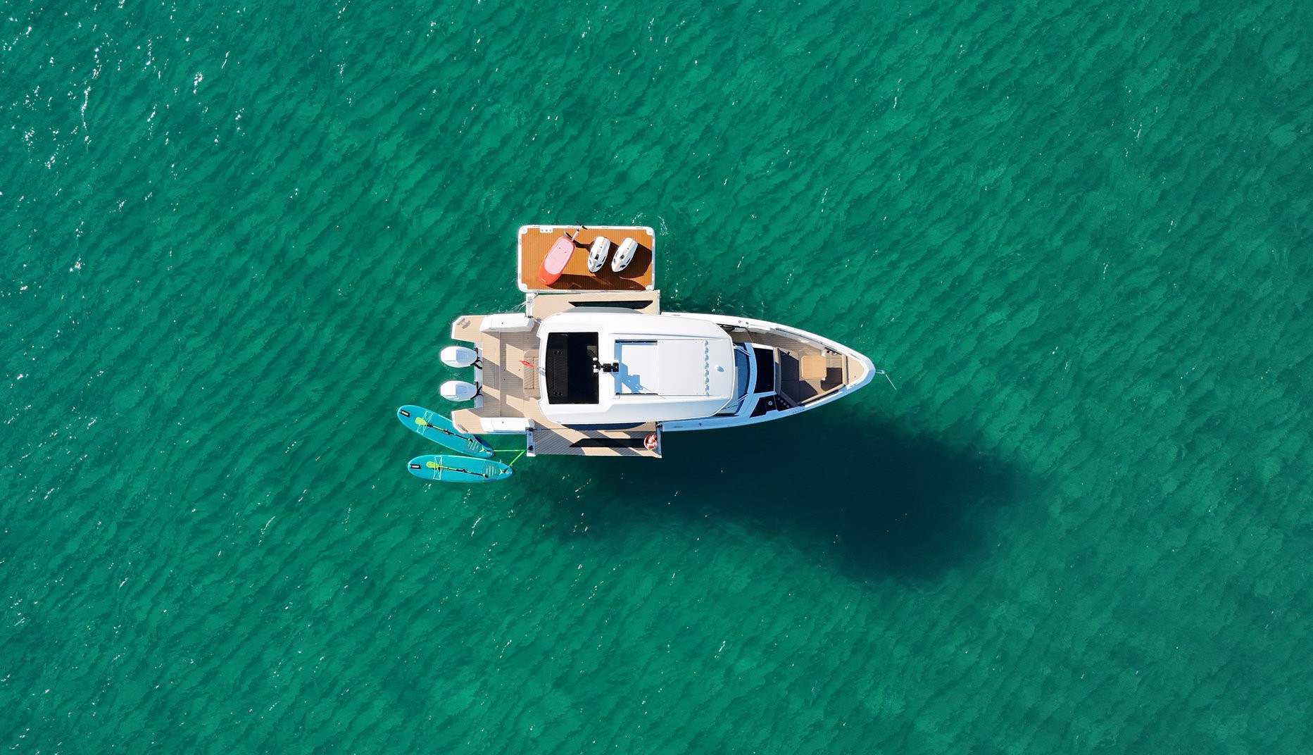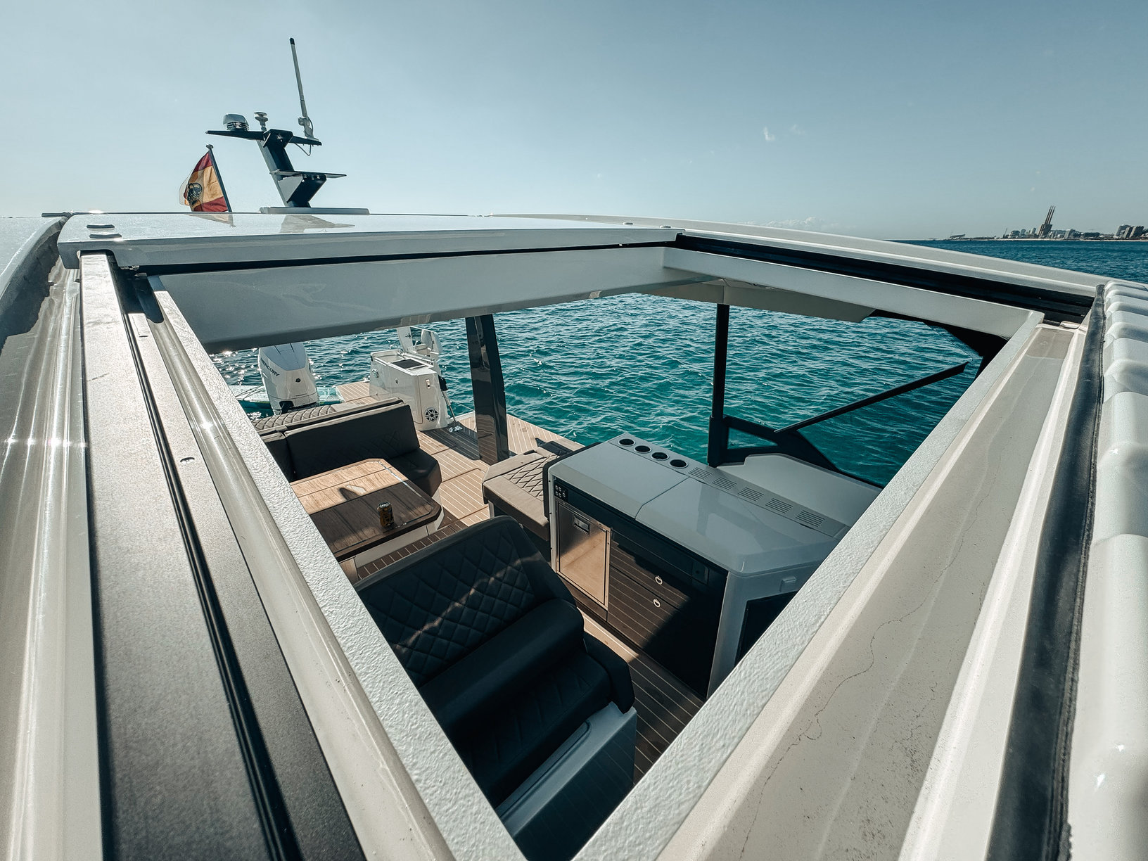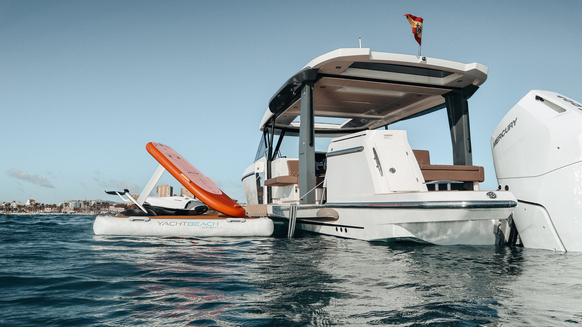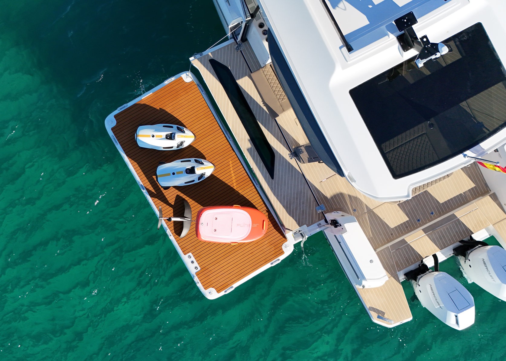 Included: VAT, insurance, captain, end clean, complimentary drinks, snacks, mooring in home port in Palma, 2 x Seabob F5S, Seabob fast charger, eFoil Fliteboard, 2 x paddleboards, snorkelling equipment, inflatable platform, and towels.