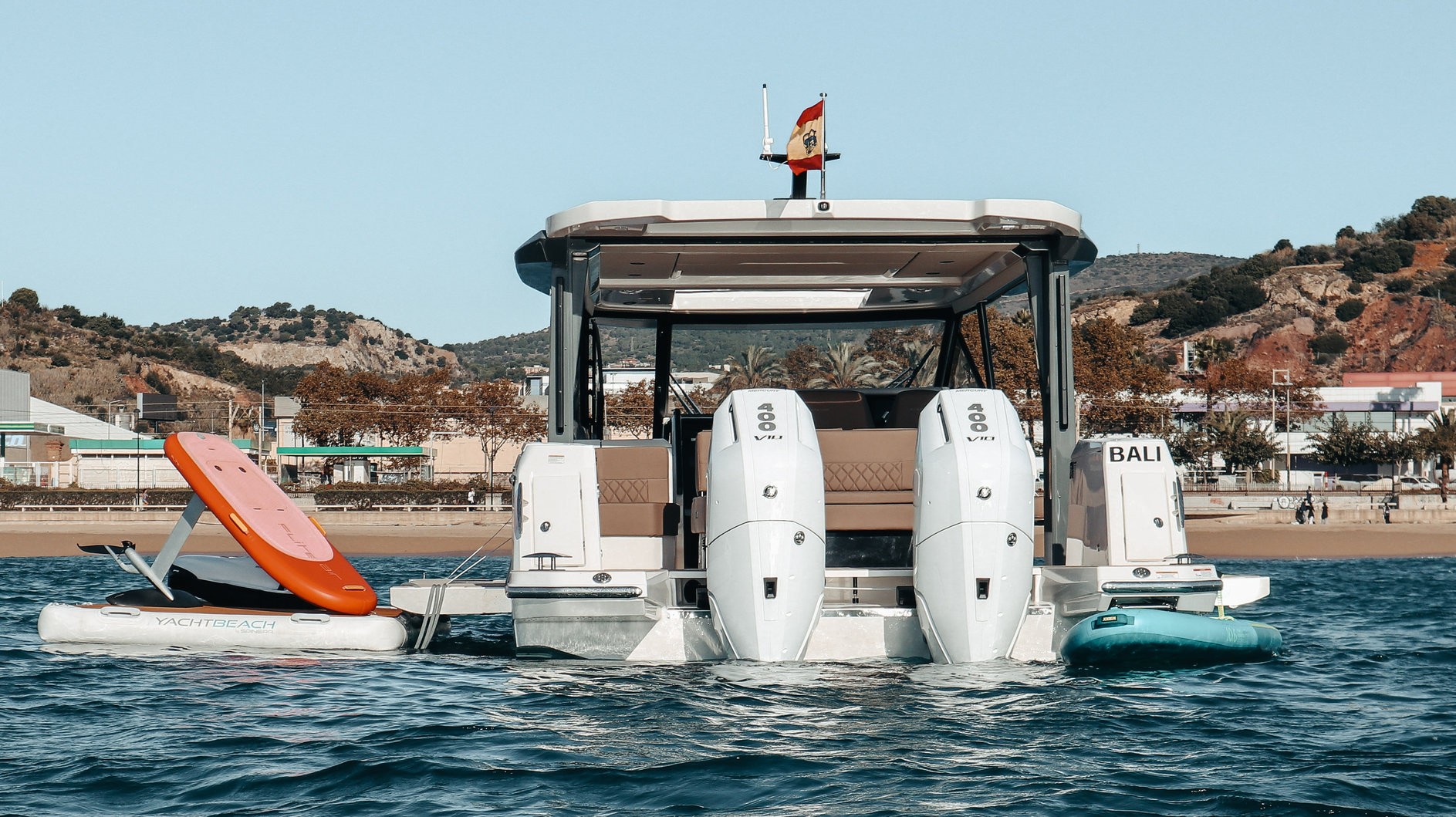 Luxury Water Adventure | Palma de Mallorca | Mallorca Discover the spectacular coastline of Mallorca aboard the brand-new Saxdor 400 GTO BALI, a dynamic and stylish yacht designed for an unforgettable day on the Mediterranean. Departing from Palma de Mallorca, this exciting charter experience is available as a full-day 8-hour or half-day 4-hour trip. Your professional captain will guide you along Mallorca’s stunning coastline to beautiful turquoise bays and hidden coves, perfect for swimming, relaxing, and enjoying the sea. For guests seeking adventure, BALI offers an impressive selection of premium water toys. Explore beneath the surface with two powerful Seabob F5S, glide effortlessly above the water on an electric Fliteboard, or enjoy the coastline at your own pace on two stand-up paddle boards. Snorkelling equipment is also available, allowing you to discover Mallorca’s vibrant underwater world. Between activities, relax on the spacious sunbeds and enjoy complimentary drinks and light snacks while taking in the Mediterranean scenery. Combining modern design, comfort, and thrilling water sports, the Saxdor 400 GTO BALI offers the perfect setting for an exceptional Mallorca yacht charter experience.